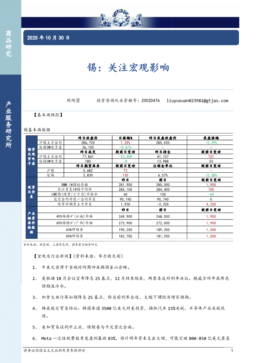 国泰君安期货-有色及贵金属日度数据简报-251028