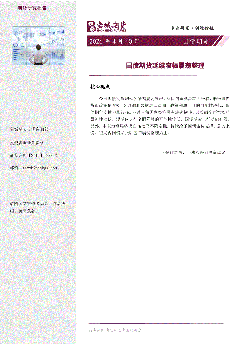 宝城期货-国债期货日报:国债期货延续窄幅震荡整理-260410