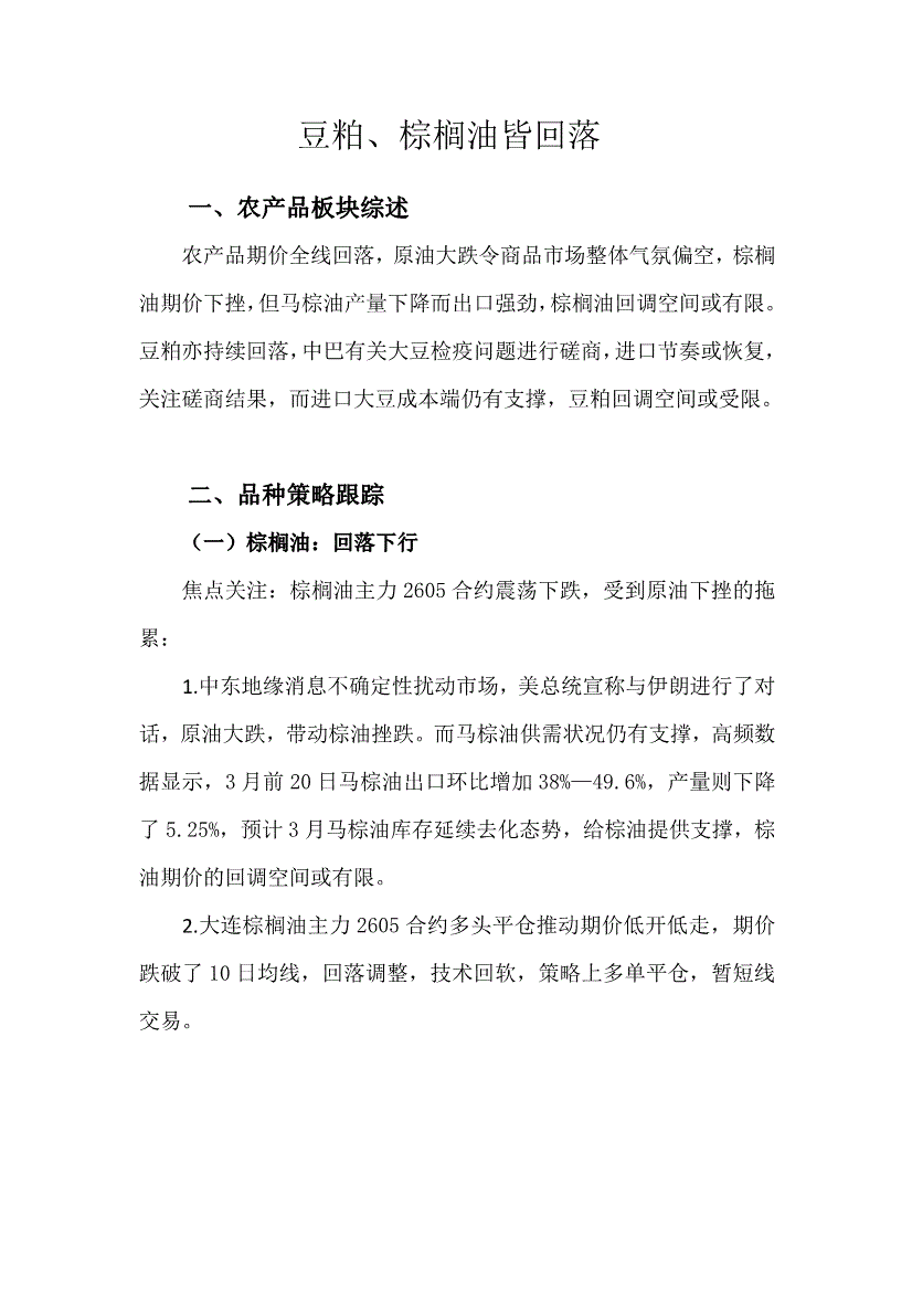 天富期货-豆粕冲高回落,棕油劲升-260312