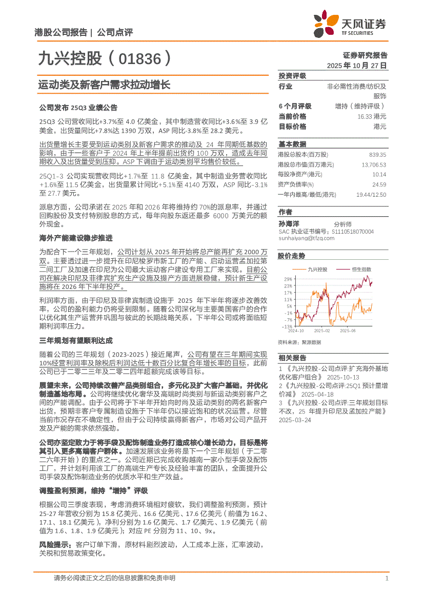 九兴控股:天风证券-九兴控股-1836.HK-运动类及新客户需求拉动增长-251027