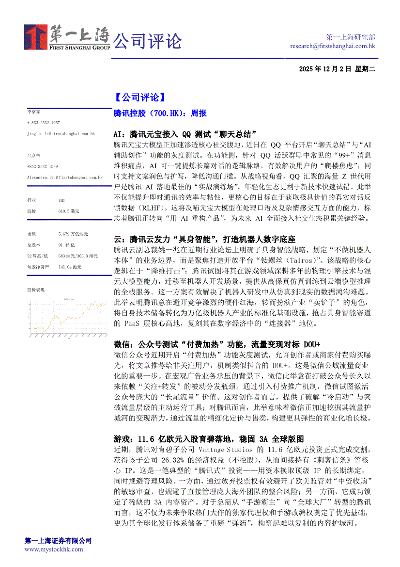 腾讯控股:第一上海-腾讯控股-0700.HK-周报-251202