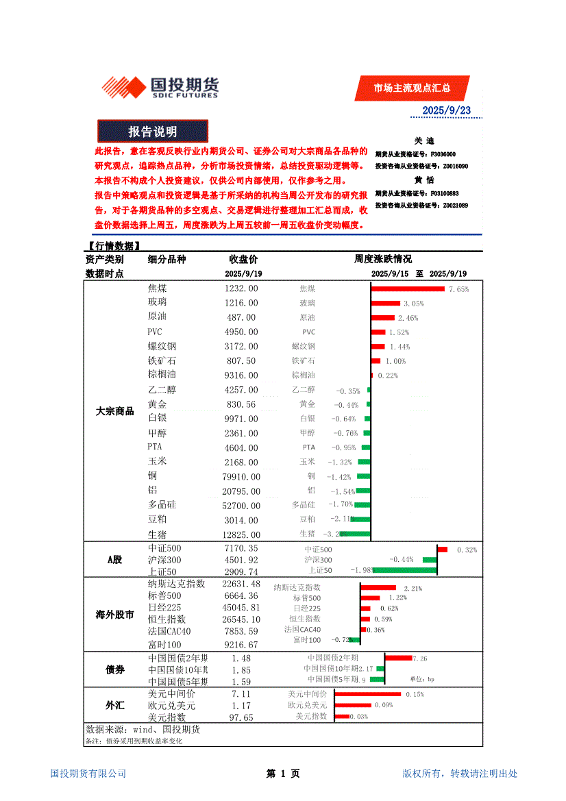 国投期货-市场主流观点汇总-250923