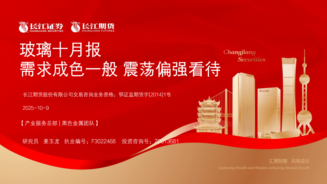长江期货-玻璃十月报:需求成色一般,震荡偏强看待-251009