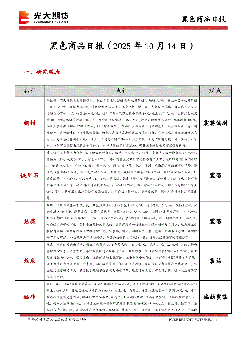 光大期货-光期黑色:铁矿石基差及价差监测日报-251016