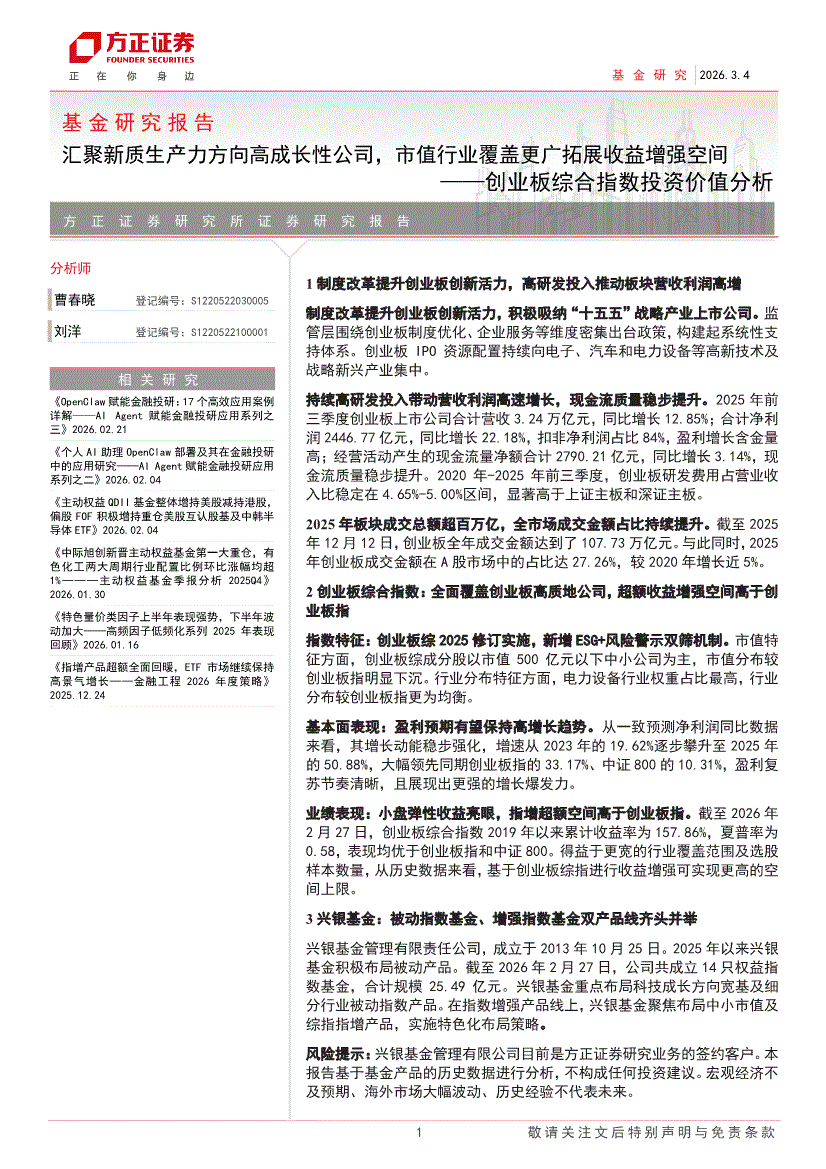 方正证券-汇聚新质生产力方向高成长性公司,市值行业覆盖更广拓展收益增强空间——创业板综合指数投资价值分析-260304