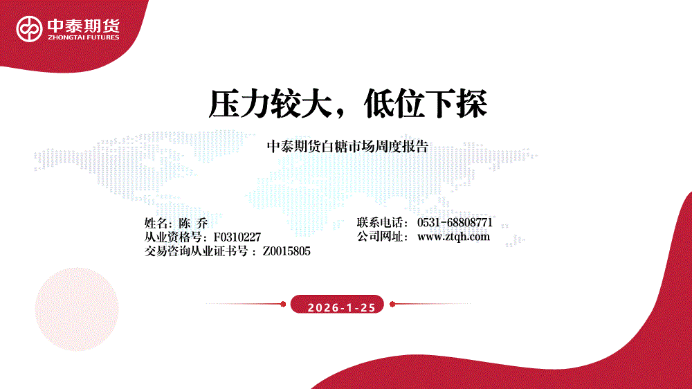 中泰期货-白糖市场周度报告:压力较大,低位下探-260125