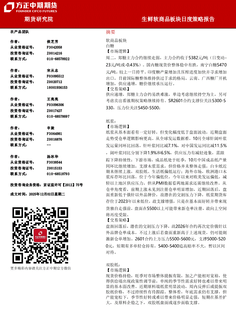方正中期期货-生鲜软商品板块日度策略报告-251202
