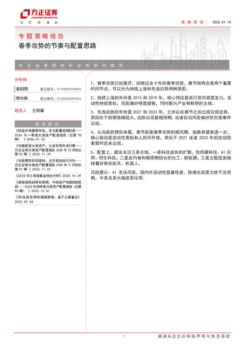 方正证券-专题策略报告:春季攻势的节奏和配置思路-260110