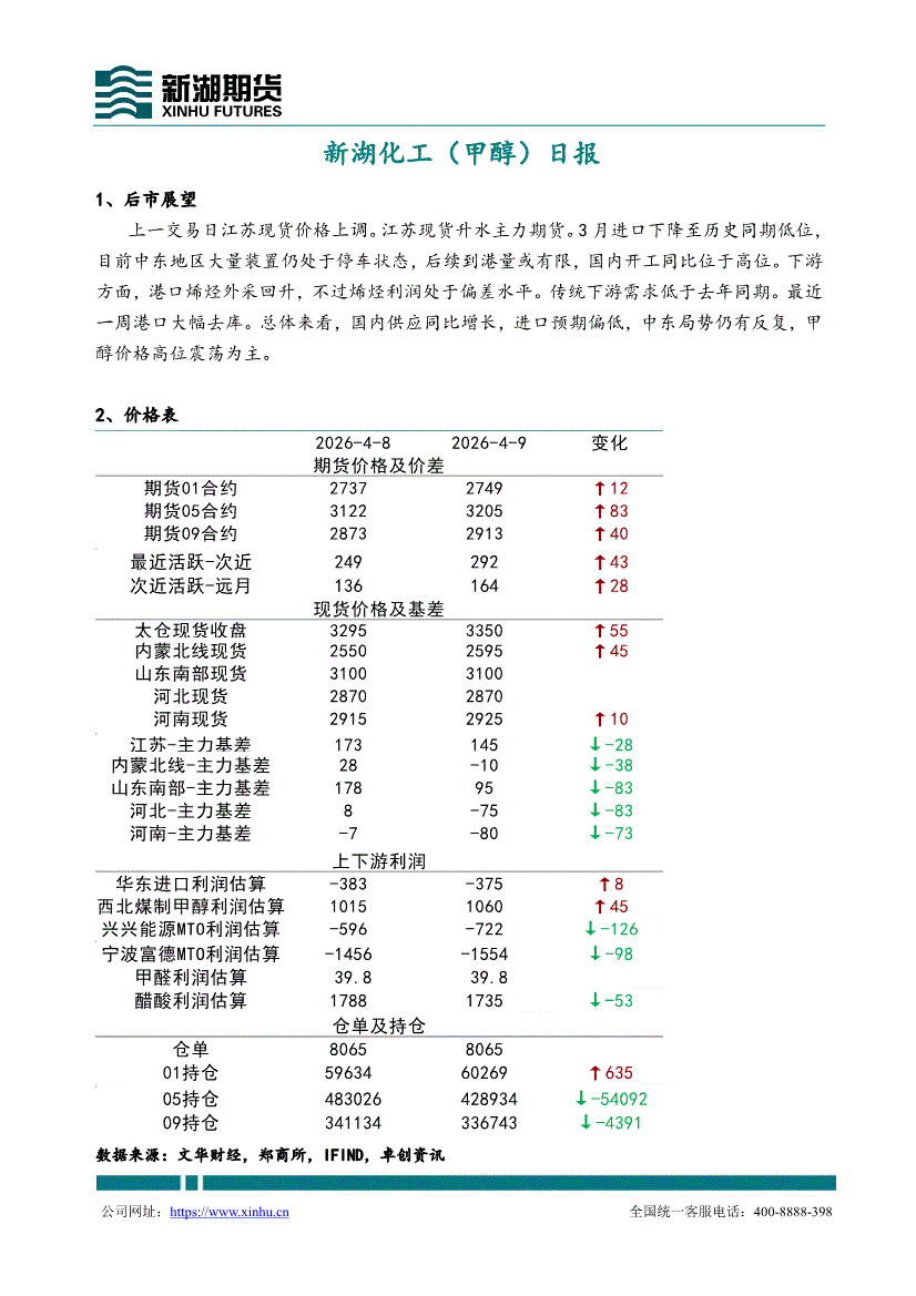 新湖期货-化工(甲醇)日报-260409