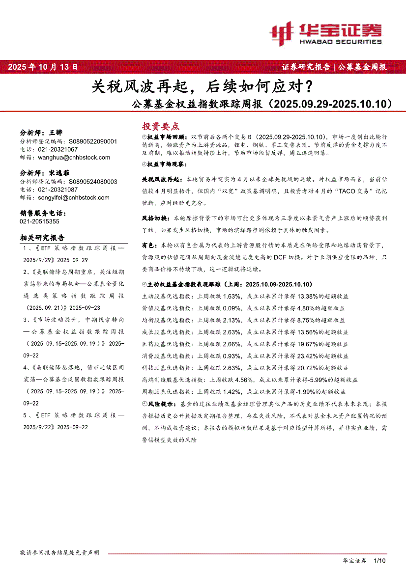 华宝证券-公募基金权益指数跟踪周报:关税风波再起,后续如何应对?-251013