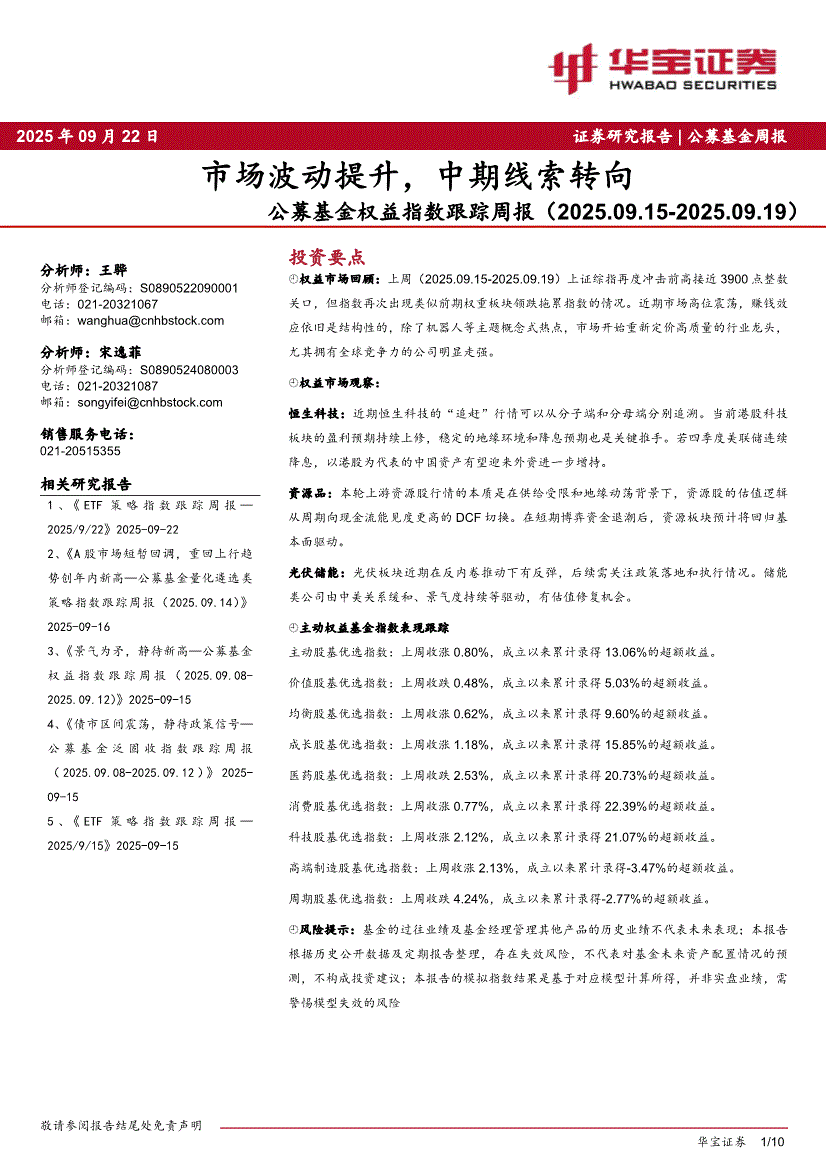 华宝证券-公募基金权益指数跟踪周报:市场波动提升,中期线索转向-250922