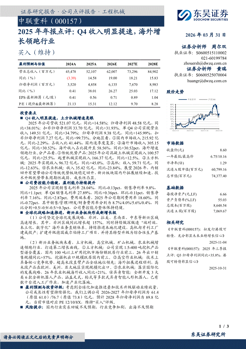 中联重科:东吴证券-中联重科-000157-2025年年报点评:Q4收入明显提速,海外增长领跑行业-260331