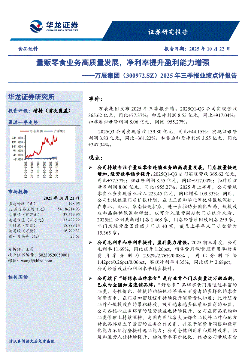 万辰集团:华龙证券-万辰集团-300972-2025年三季报业绩点评报告:量贩零食业务高质量发展,净利率提升盈利能力增强-251022