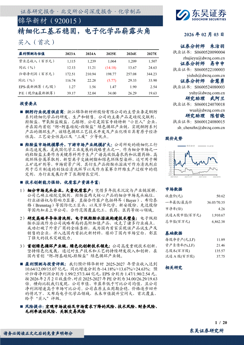 东吴证券-锦华新材-920015-精细化工基石稳固,电子化学品崭露头角-260203