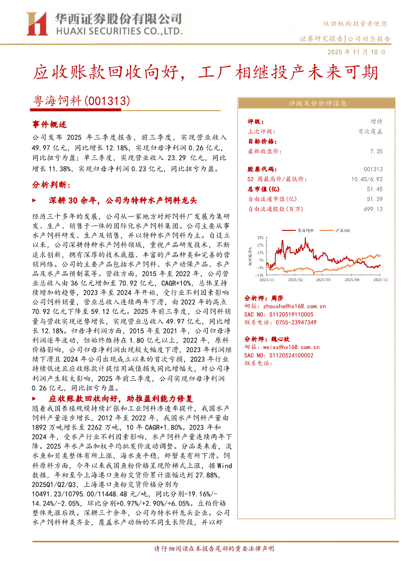 粤海饲料:华西证券-粤海饲料-001313-应收账款回收向好,工厂相继投产未来可期-251110