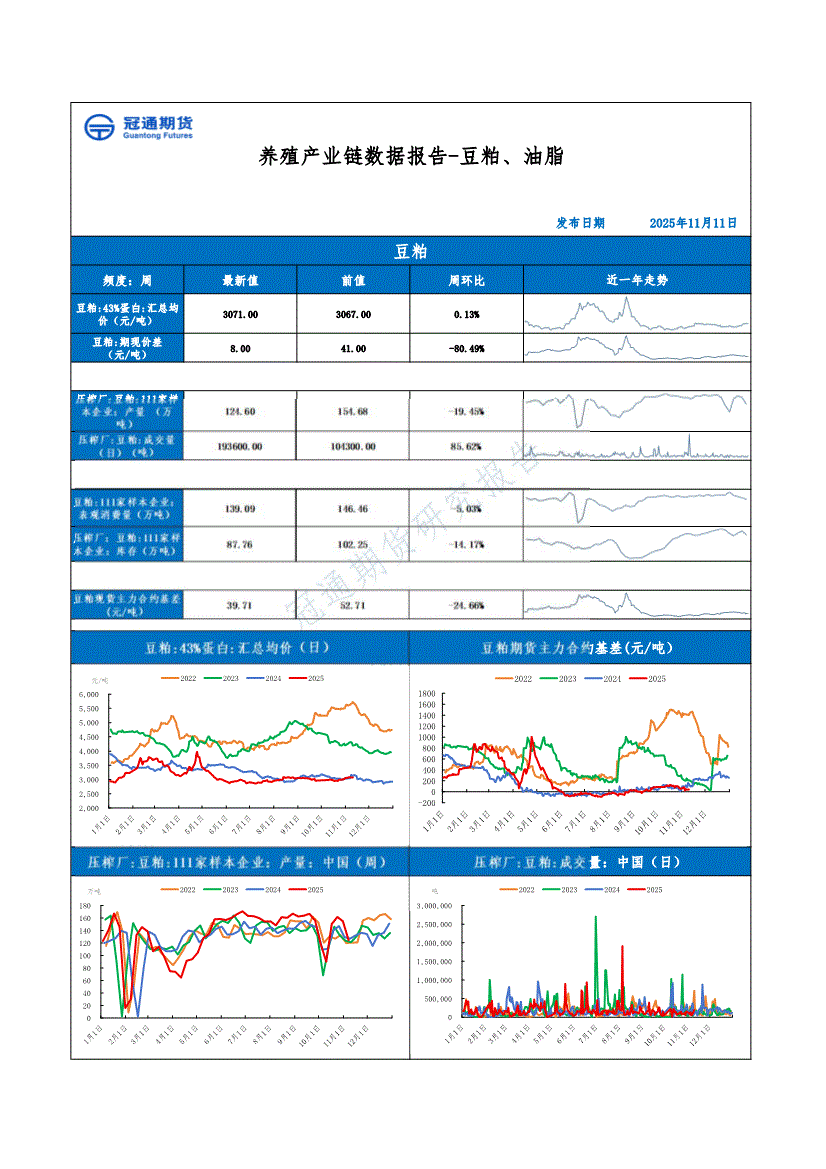 冠通期货-养殖产业链数据报告~豆粕、油脂-251111