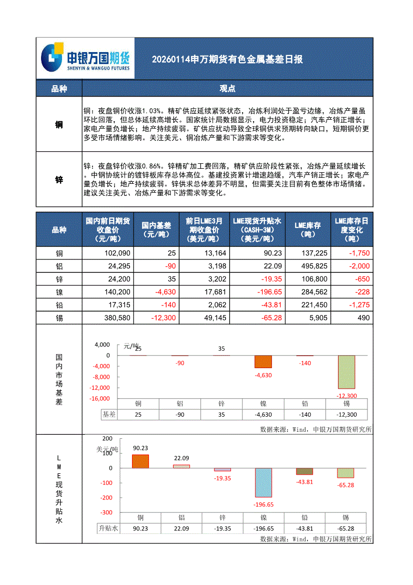 申银万国期货-有色金属基差日报-260114