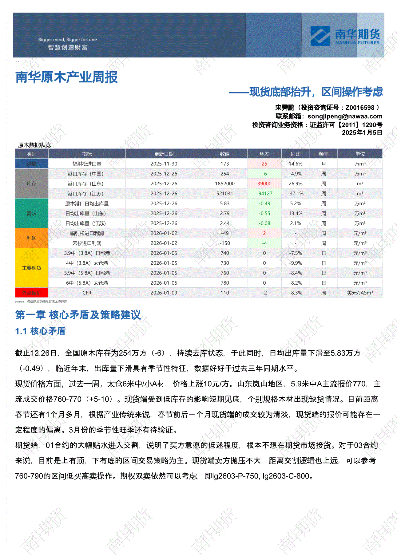 南华期货-原木产业周报:现货底部抬升,区间操作考虑-260105