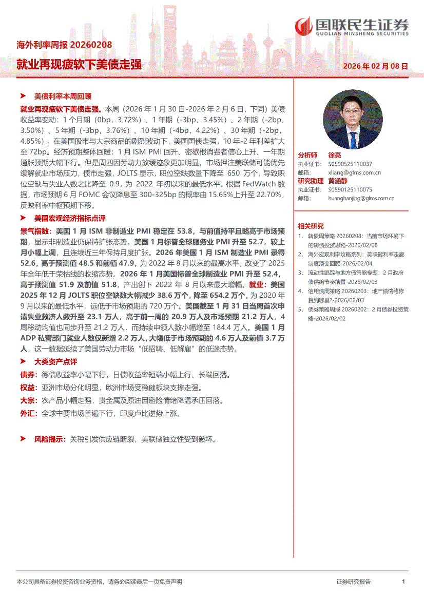 国联民生证券-海外利率周报:就业再现疲软下美债走强-260208