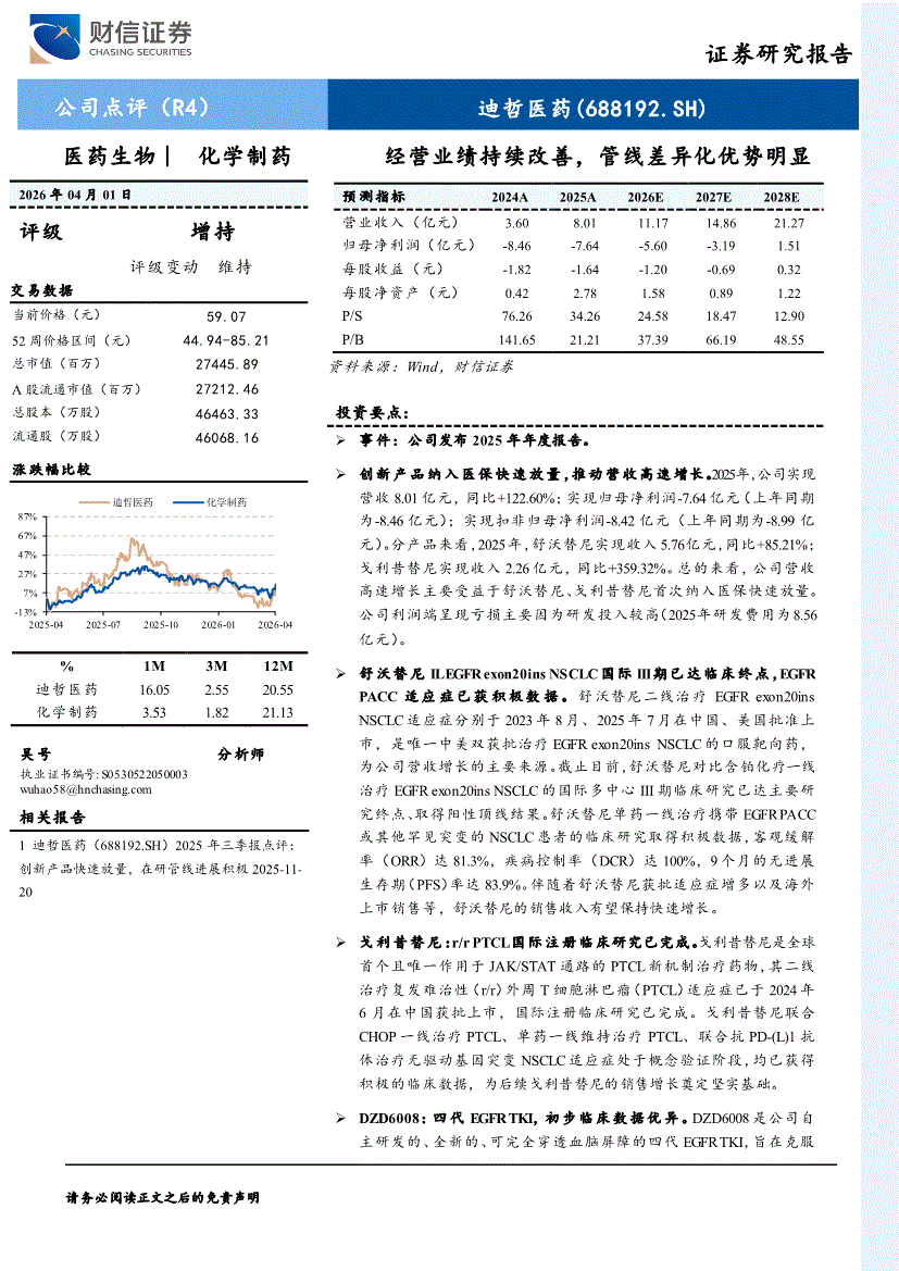 迪哲医药:财信证券-迪哲医药-688192-经营业绩持续改善,管线差异化优势明显-260401