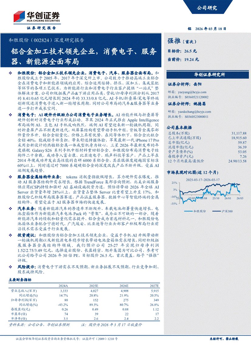 和胜股份:华创证券-和胜股份-002824-深度研究报告:铝合金加工技术领先企业,消费电子、服务器、新能源全面布局-260318