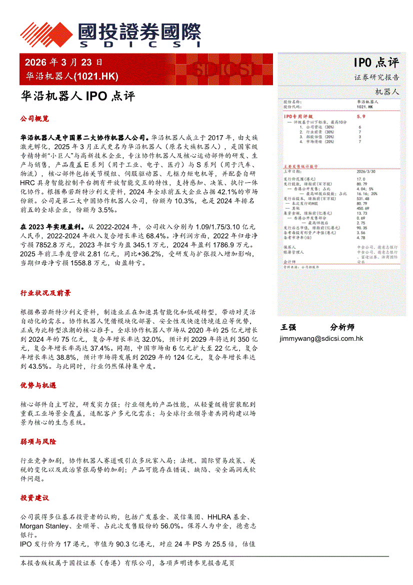 国投证券国际-IPO点评:华沿机器人(1021.HK)-260323