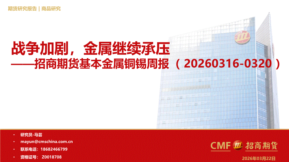 招商期货-基本金属铜锡周报:战争加剧,金属继续承压-260322