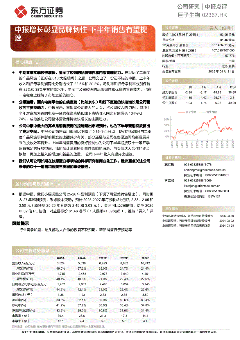 巨子生物:东方证券-巨子生物-2367.HK-中报增长彰显品牌韧性,下半年销售有望提速-250831