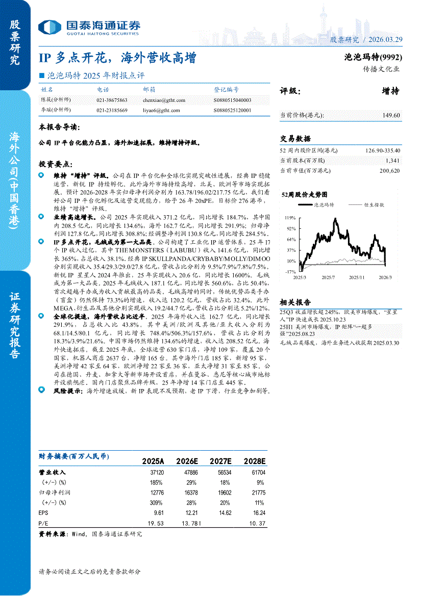 泡泡玛特:国泰海通证券-泡泡玛特-9992.HK-2025年财报点评:IP多点开花,海外营收高增-260329