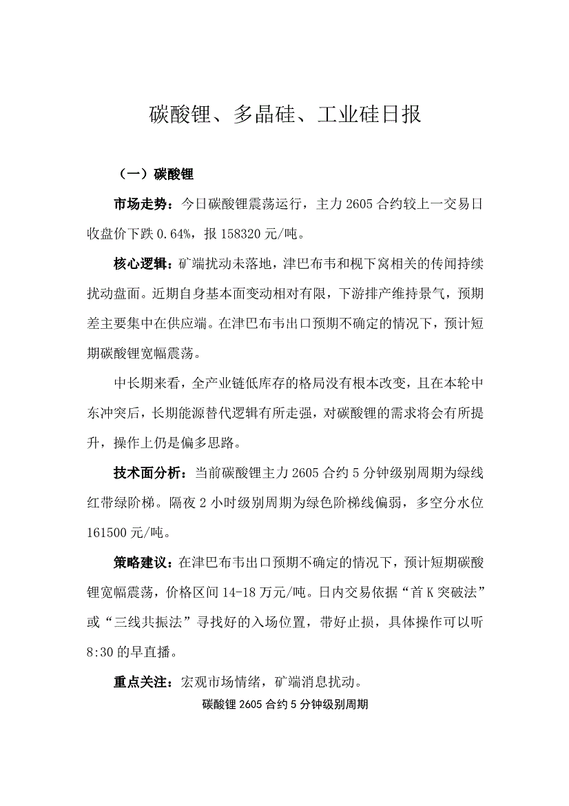 天富期货-碳酸锂、工业硅、多晶硅日报-260305