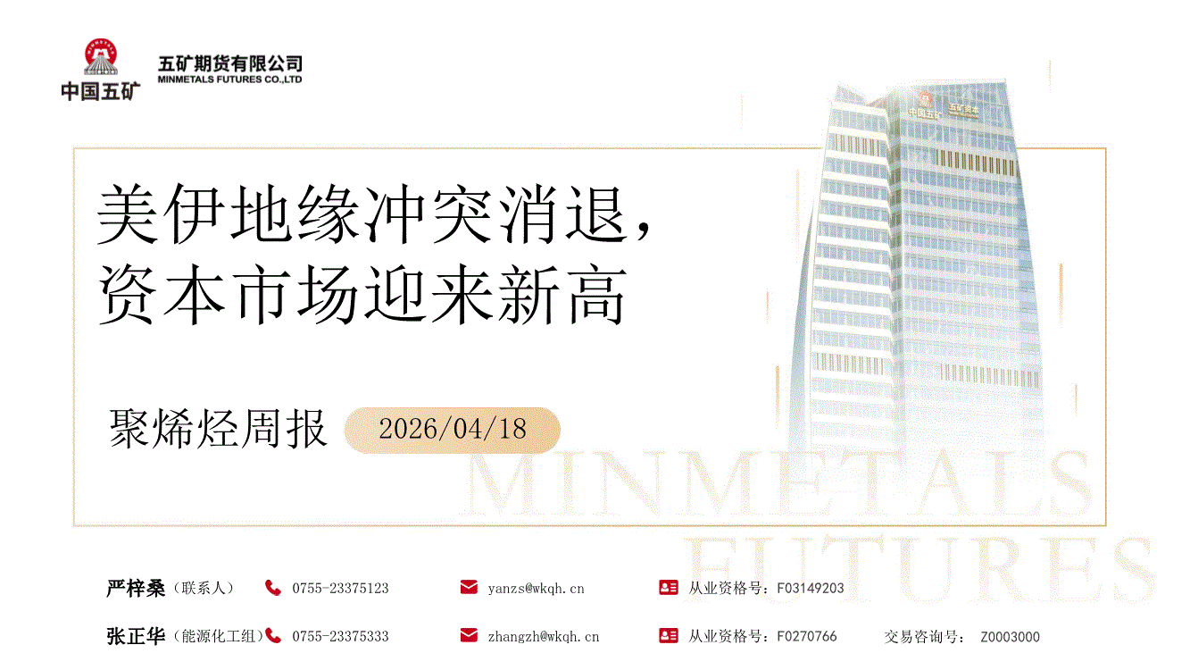 五矿期货-聚烯烃周报:美伊地缘冲突消退,资本市场迎来新高-260418