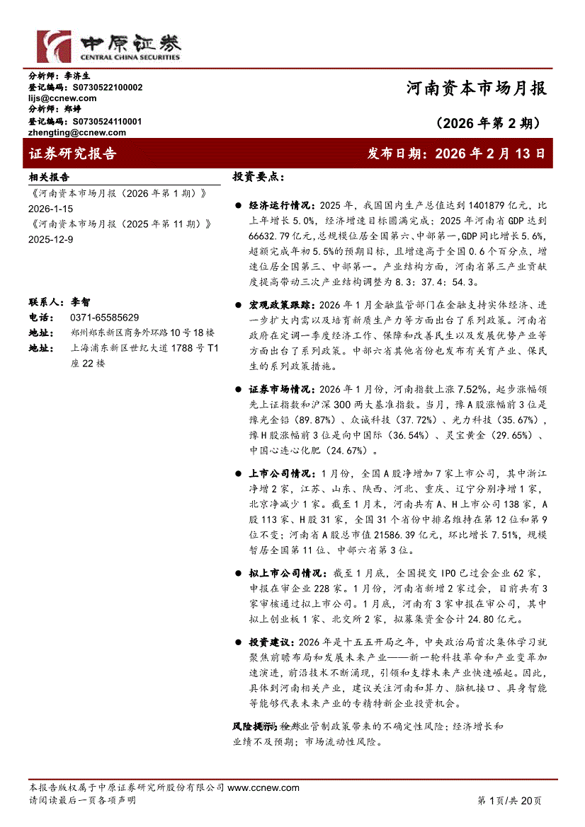 中原证券-河南资本市场月报(2026年第2期)-260213