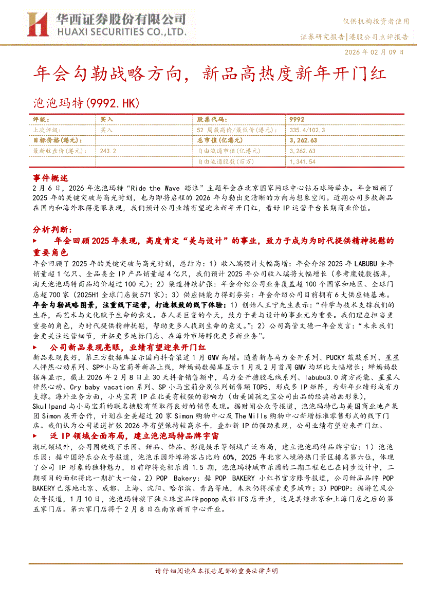 泡泡玛特:华西证券-泡泡玛特-9992.HK-年会勾勒战略方向,新品高热度新年开门红-260209