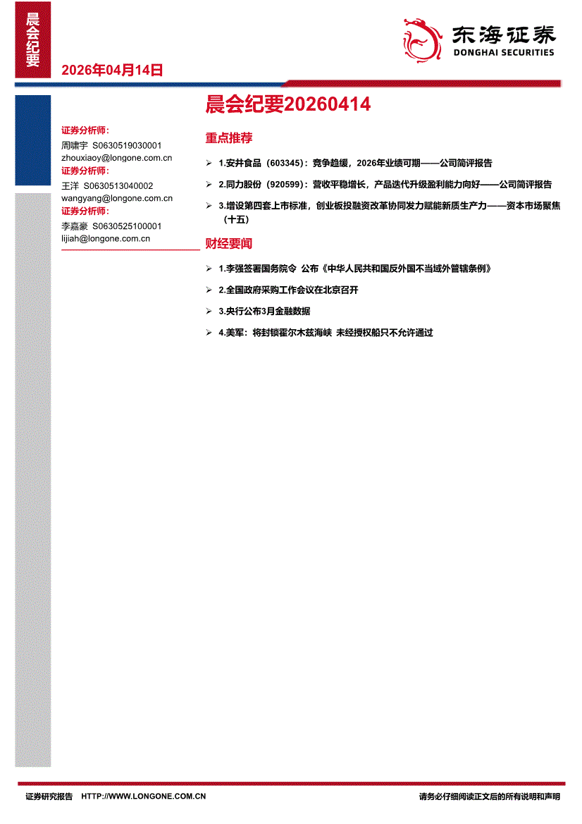 东海证券-晨会纪要-260414