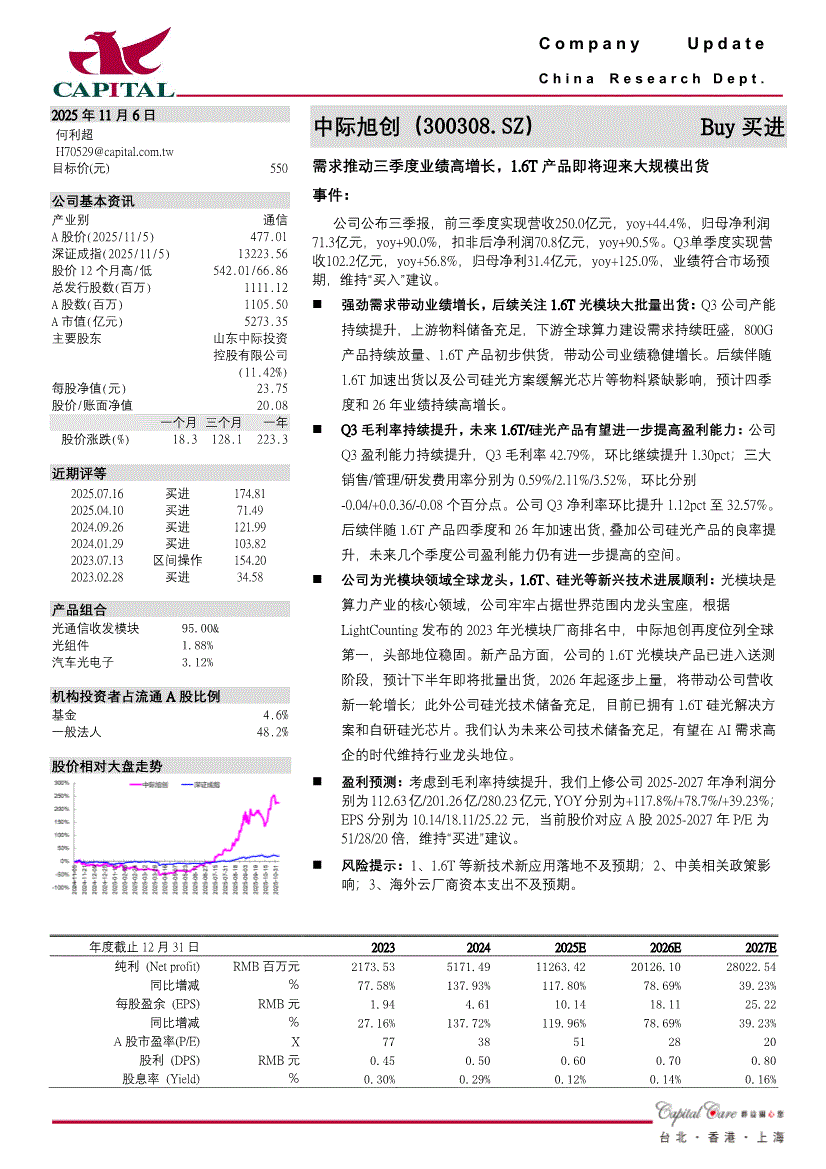 中际旭创:群益证券-中际旭创-300308-需求推动三季度业绩高增长,1.6T产品即将迎来大规模出货-251106