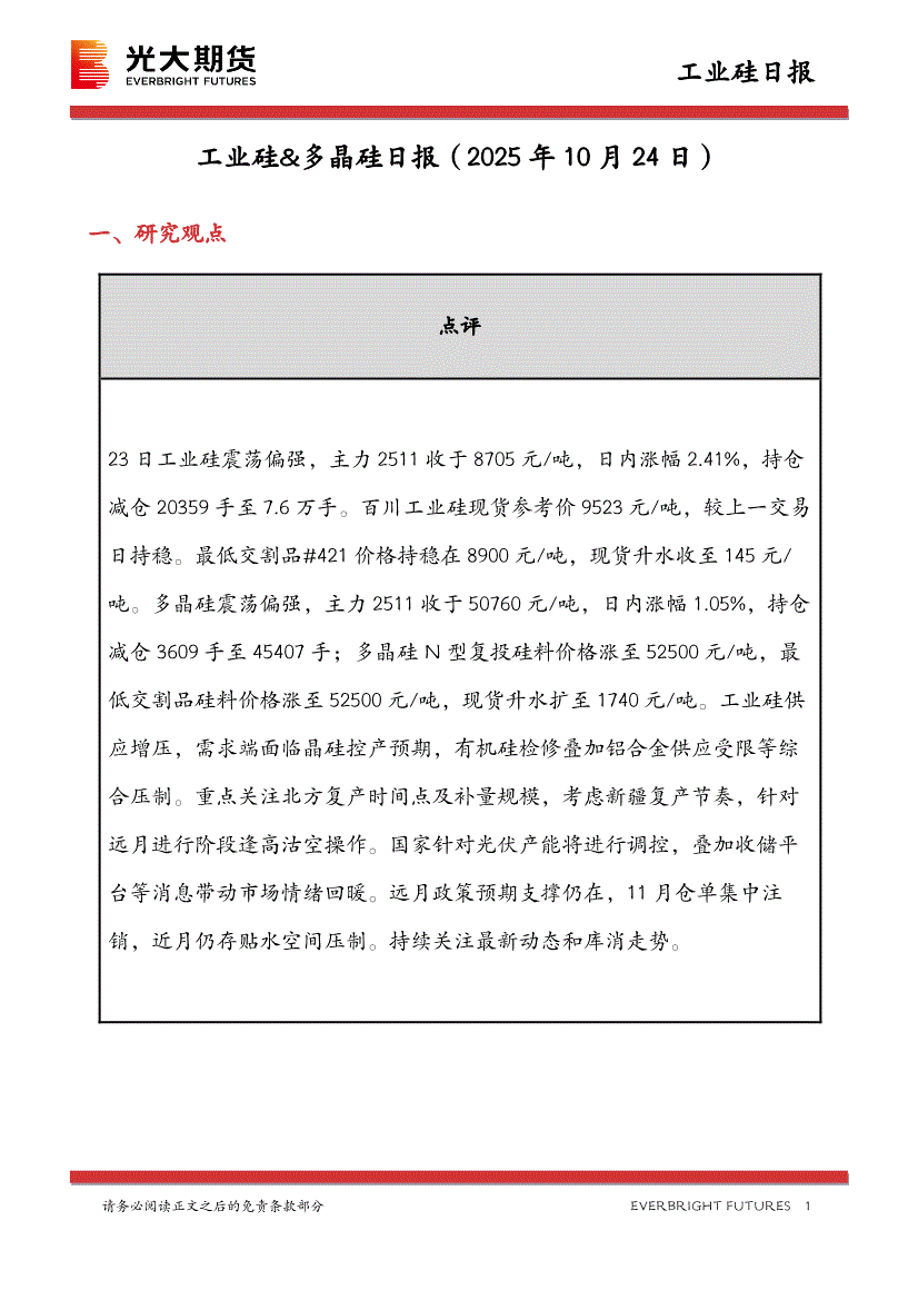光大期货-工业硅&多晶硅日报-251024