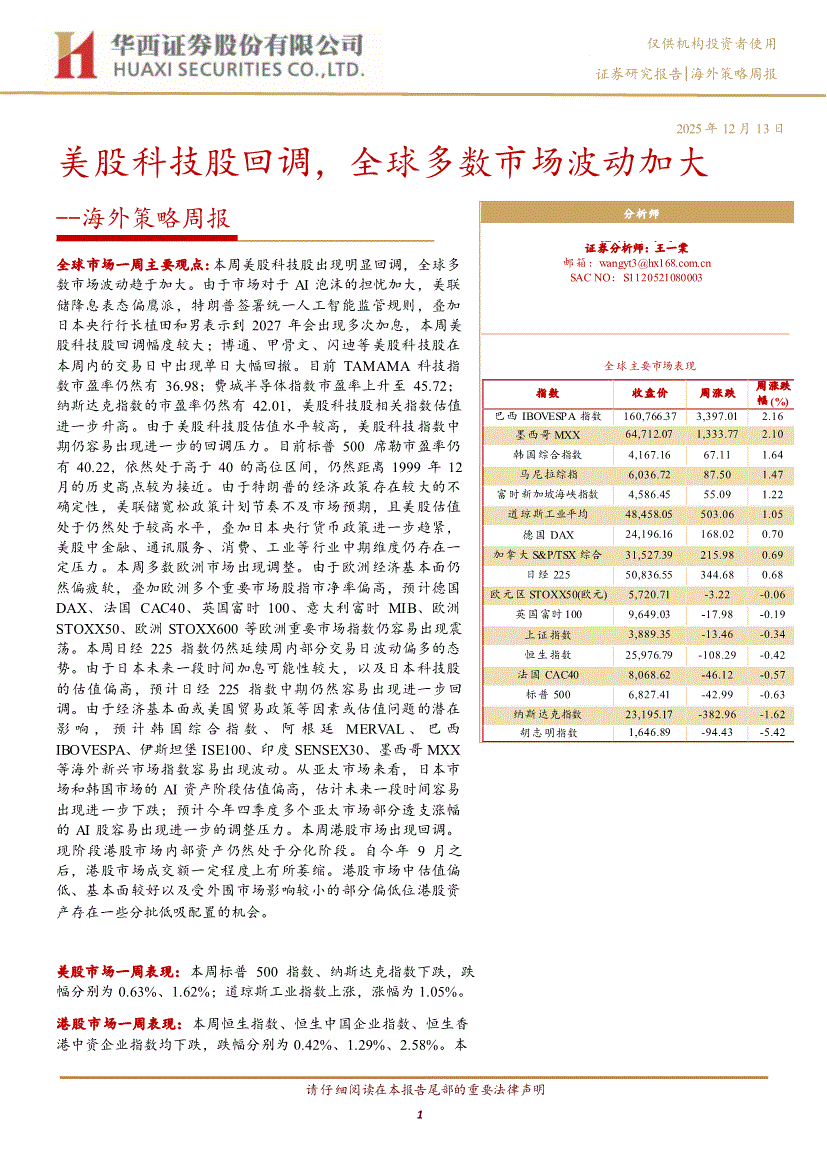华西证券-海外策略周报:美股科技股回调,全球多数市场波动加大-251213