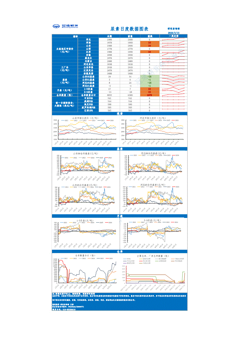 冠通期货-尿素日度数据图表-260313