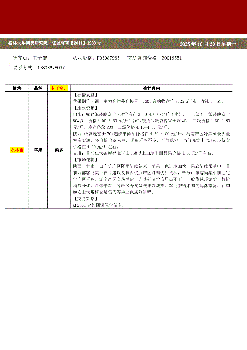 格林大华期货-早盘提示~棉花、苹果、原木-251027