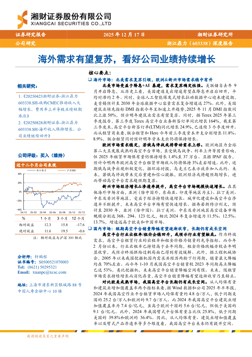 浙江鼎力:湘财证券-浙江鼎力-603338-深度报告:海外需求有望复苏,看好公司业绩持续增长-251217
