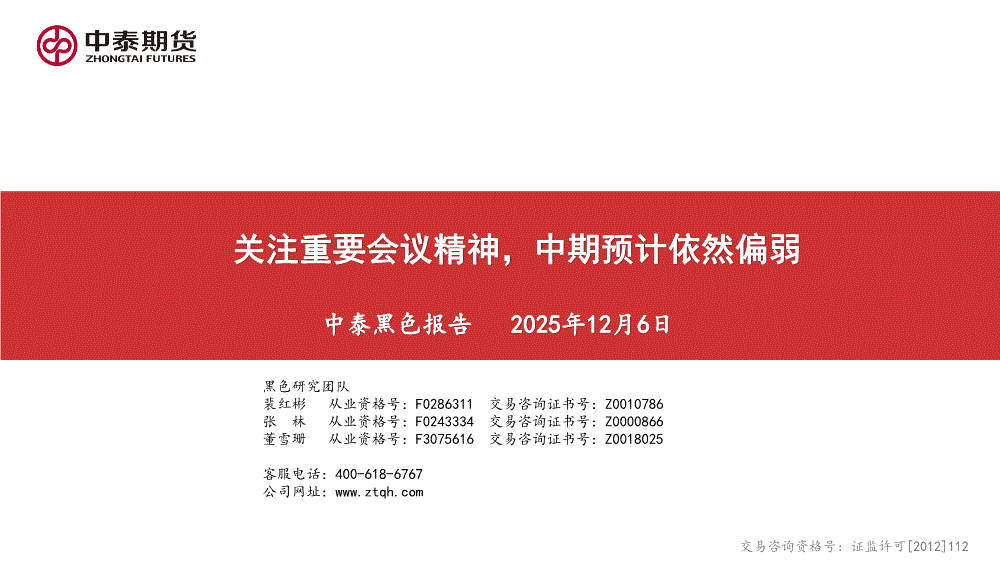 中泰期货-黑色报告:关注重要会议精神,中期预计依然偏弱-251206