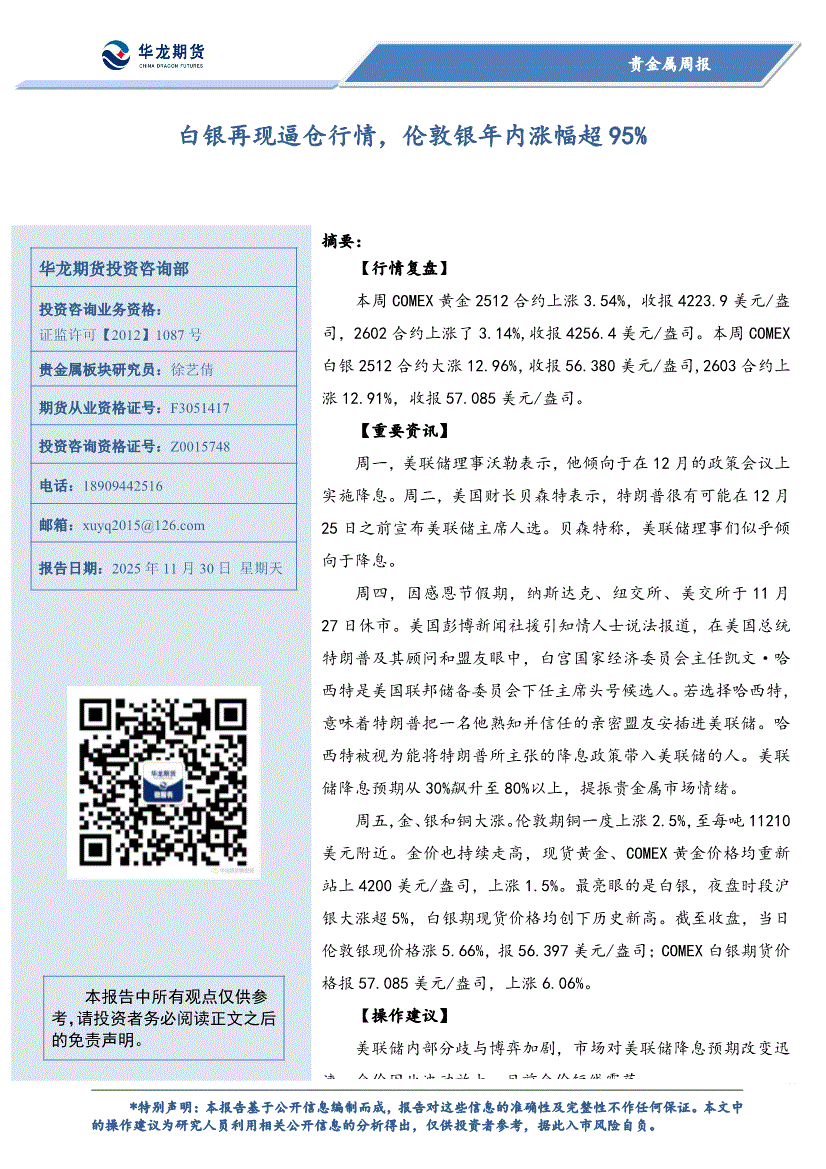 华龙期货-贵金属周报:白银再现逼仓行情,伦敦银年内涨幅超95%-251130