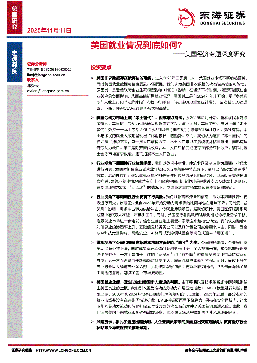 东海证券-美国经济专题深度研究:美国就业情况到底如何?-251111