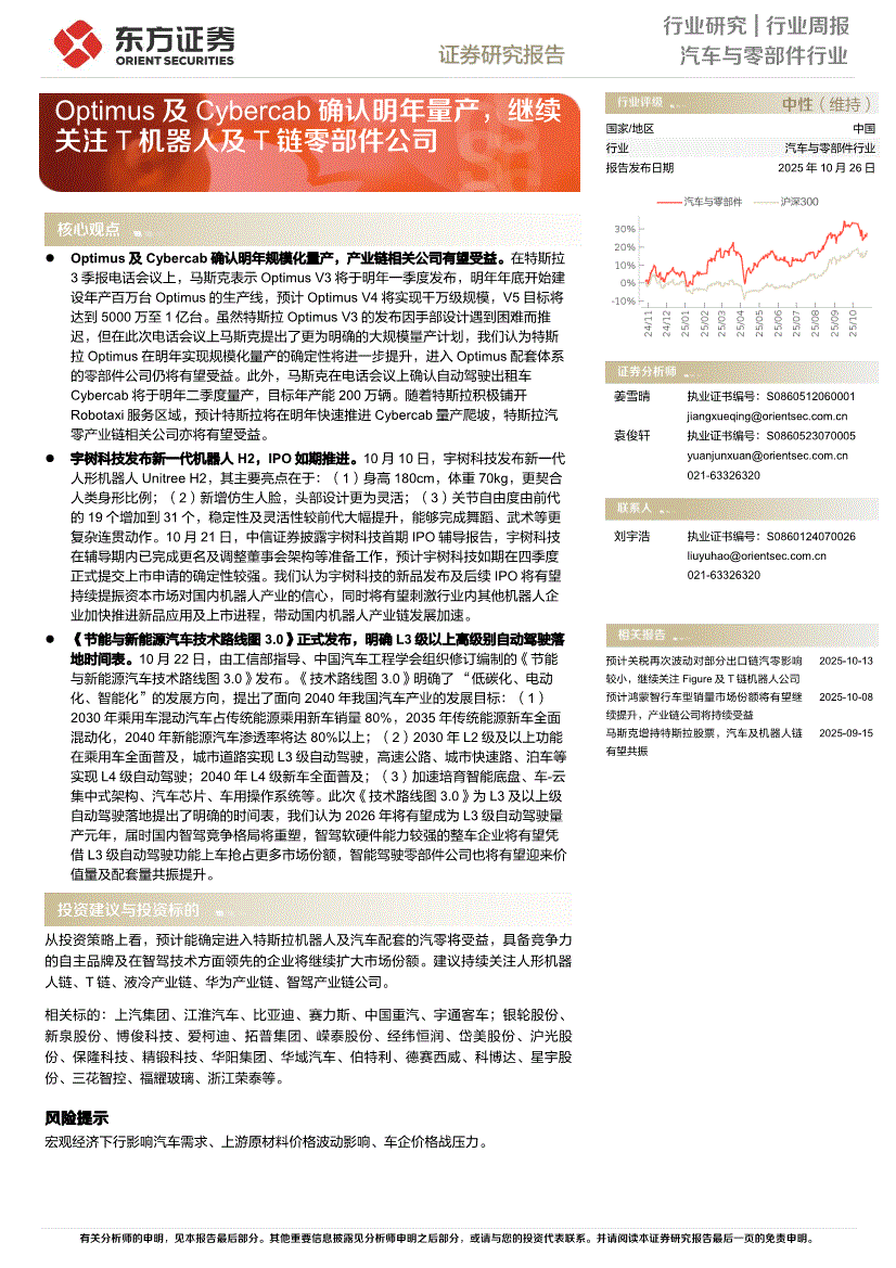 汽车与零部件行业:东方证券-汽车与零部件行业:Optimus及Cybercab确认明年量产,继续关注T机器人及T链零部件公司-251026