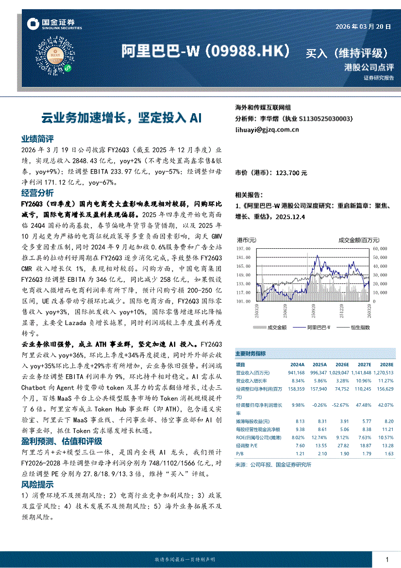 阿里巴巴~W:国金证券-阿里巴巴~W-9988.HK-云业务加速增长,坚定投入AI-260320