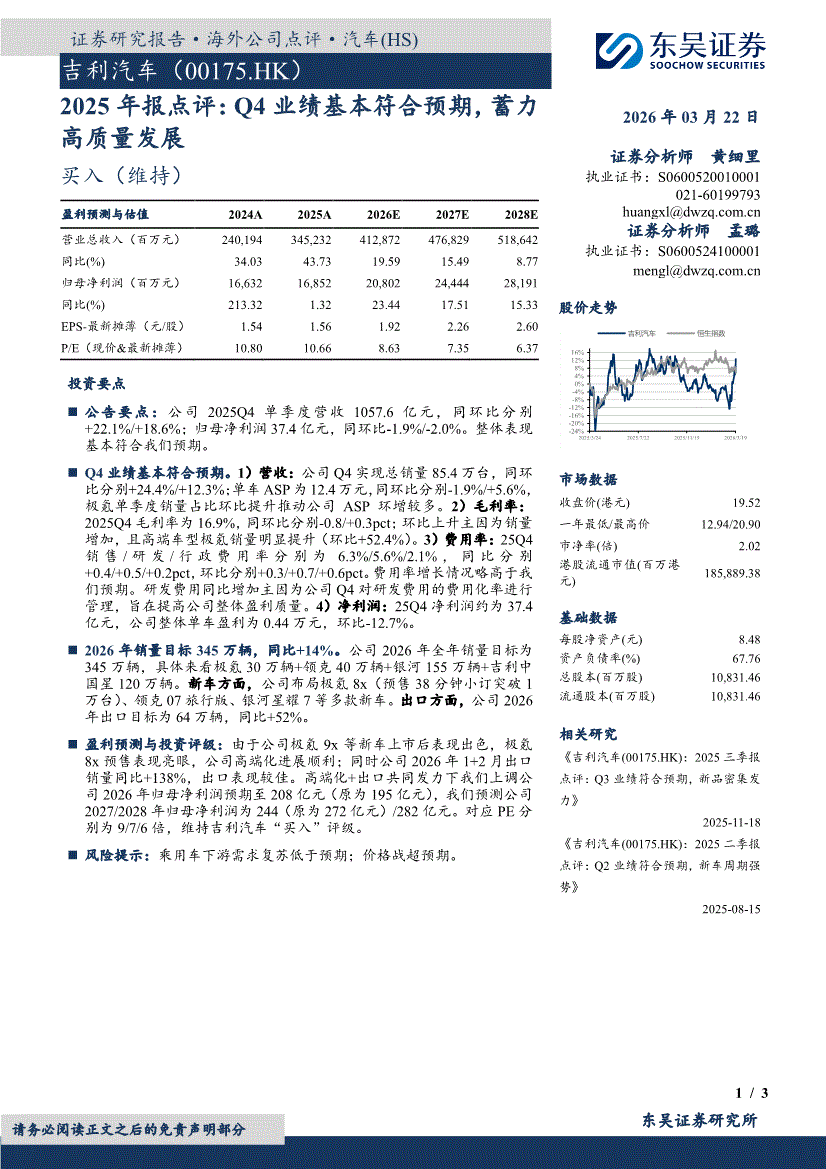吉利汽车:东吴证券-吉利汽车-0175.HK-2025年报点评:Q4业绩基本符合预期,蓄力高质量发展-260322