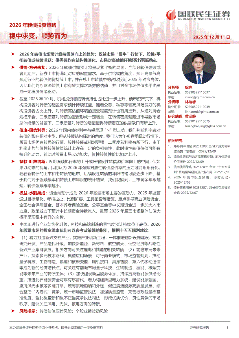 国联民生证券-2026年转债投资策略:稳中求变,顺势而为-251211