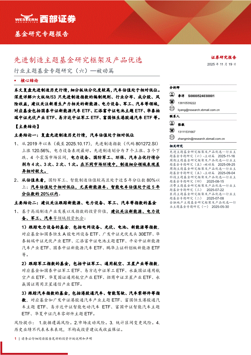西部证券-行业主题基金专题研究(六)—被动篇:先进制造主题基金研究框架及产品优选-251119