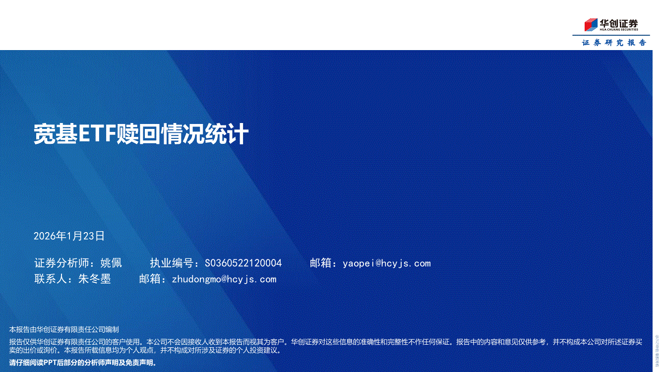 华创证券-宽基ETF赎回情况统计-260123