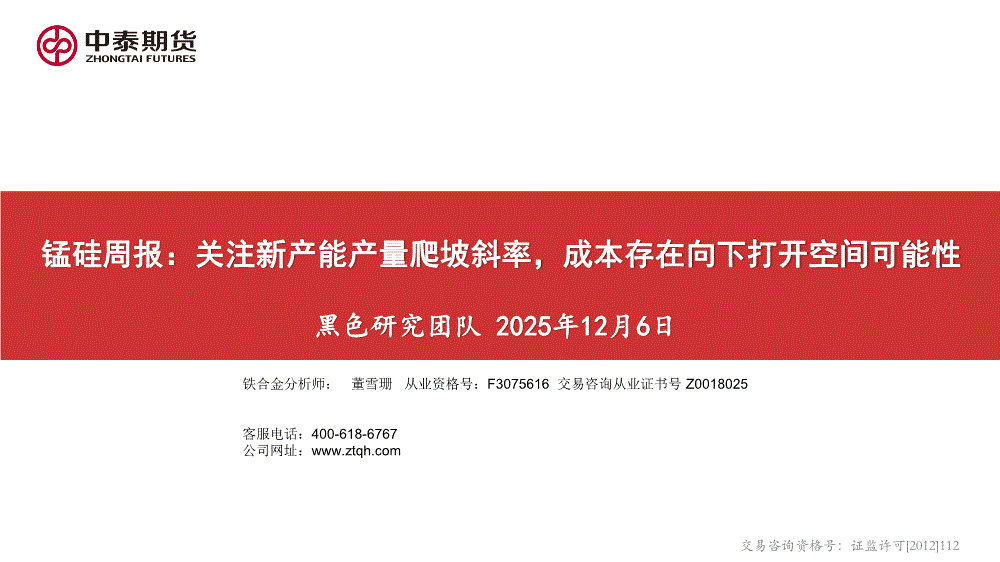 中泰期货-锰硅周报:关注新产能产量爬坡斜率,成本存在向下打开空间可能性-251206